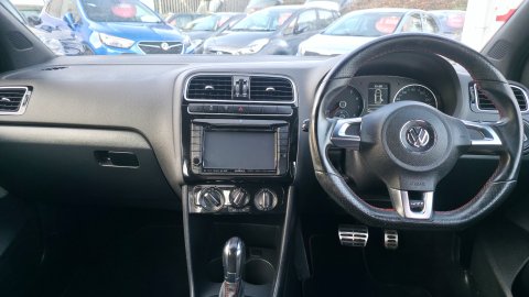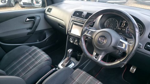 TAKE A LOOK AT THIS STUNNING 2013 AUTOMATIC VOLKSWAGEN POLO GTI FINISHED IN DEEP BLACK PEARL, THIS FANTASTIC HOT HATCH BOASTS A 177 BHP 1.4 ENGINE WITH AN AVERAGE FUEL CONSUMPTION OF 47MPG, THIS HAS BEEN A VERY WELL LOVED AND CARED FOR VEHICLE, IT HAS BEEN SERVICED EVERY YEAR WITH AROUND 5000 MILES BETWEEN EACH SERVICE, THE LAST OWNER HAVING HAD THE VEHICLE FOR 12 YEARS SINCE THE CAR WAS 9 MONTHS OLD, IT HAS A GREAT SPECIFICATION WHICH INCLUDES SATELLITE NAVIGATION, BLUETOOTH, AIR CONDITIONING, REMOTE CENTRAL LOCKING AND MANY MORE, PLEASE CALL US ON 01273 596959 FOR MORE INFORMATION!